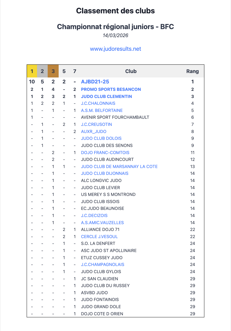 Le bilan de la journée est tout simplement incroyable. Sur les 16 catégories en lice, nos judokas ont raflé 10 titres de champions régionaux. Au-delà des médailles, c'est l'esprit de corps et la détermination de l'équipe qui ont marqué les esprits.